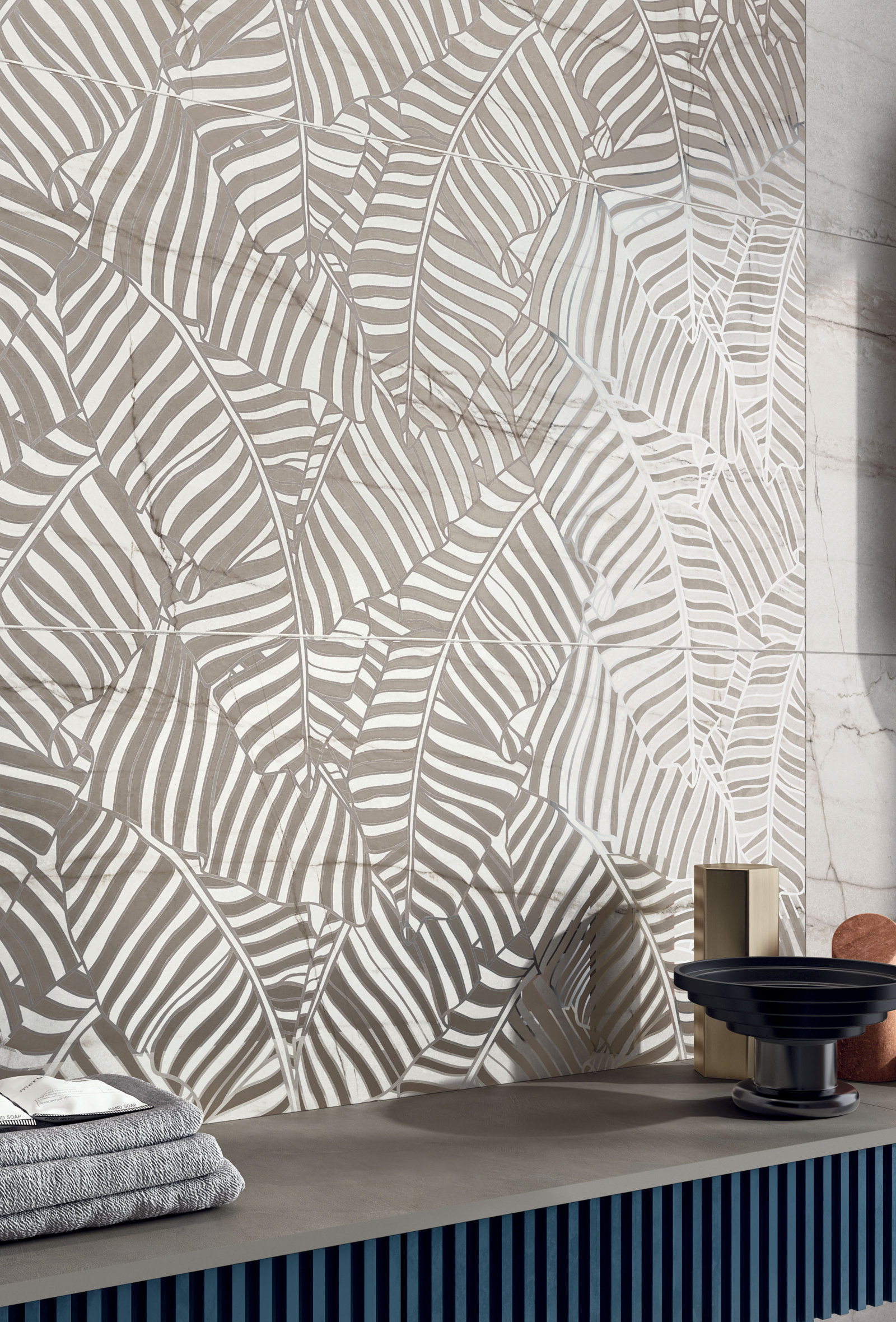 gresie portelanata Italia marmura alb MONTBLANC LUX 120X270 + MONTBLANC LUX DEC. VENTAGLI 120X270 + LUCE PELTRO 60X120.jpg