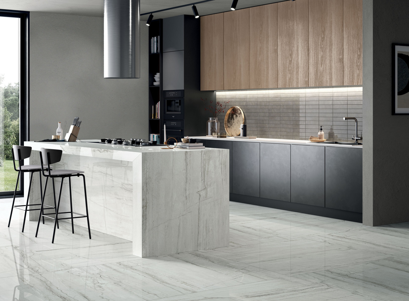 gresie portelanata Italia marmura alb aramie blat bucatarie BLANC DU BLANC SOFT 120X270 + ESSENTIAL OAK 20X120.jpg