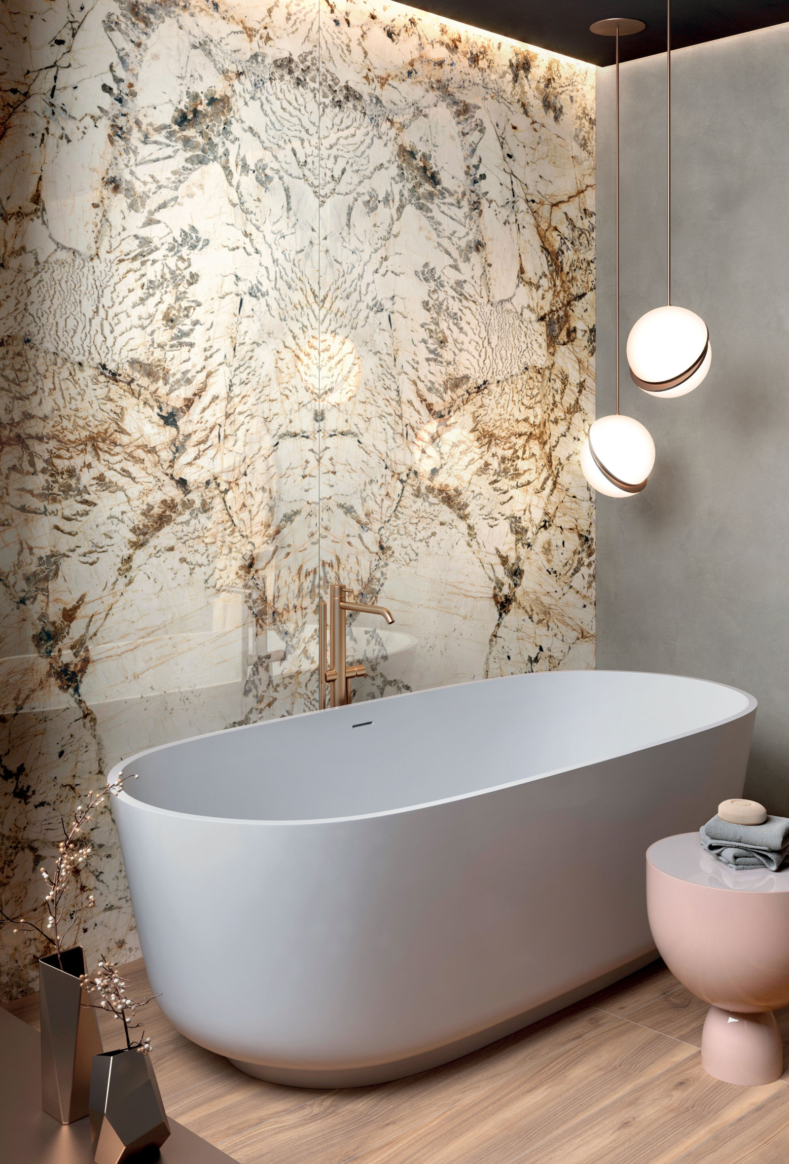 gresie portelanata Italia marmura alb aramie beton lemn BLANC DU BLANC LUX BOOKMATCH A+B 120X270 + LUCE PELTRO 120X270, 60X120 + ESSENTIAL OAK 20X120.jpg