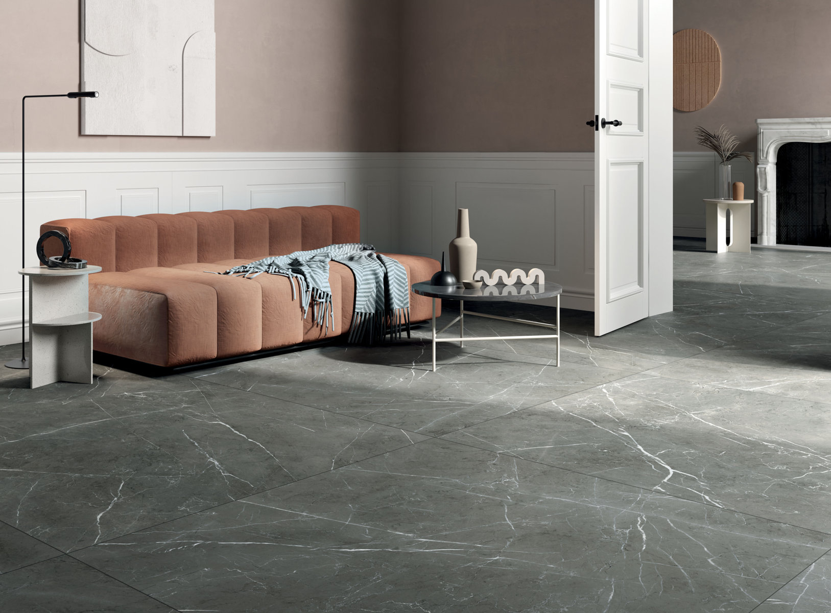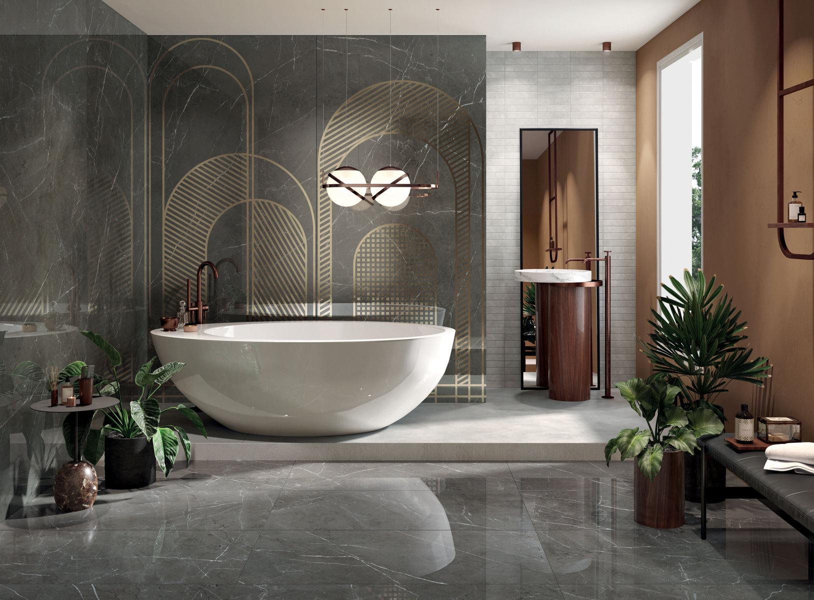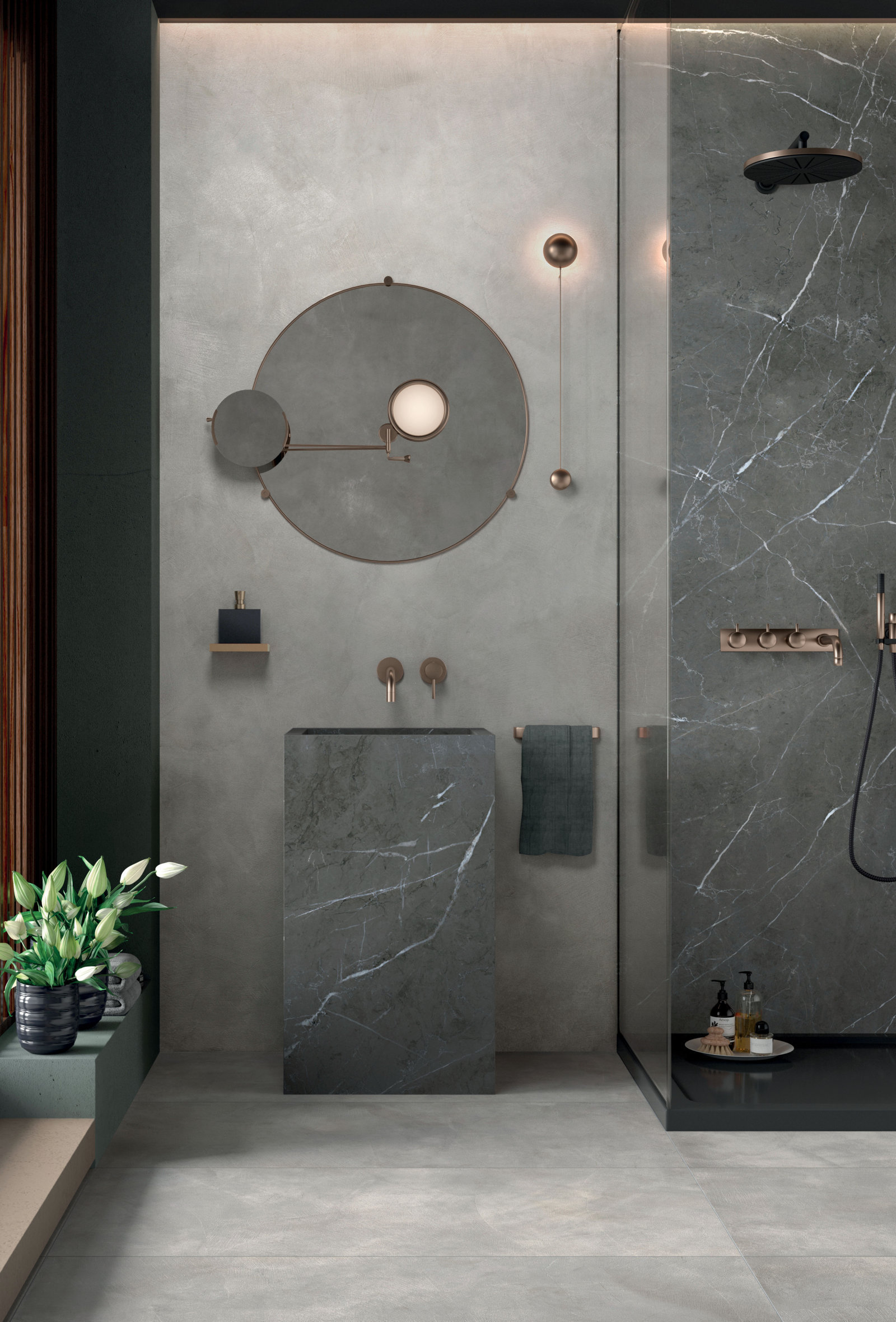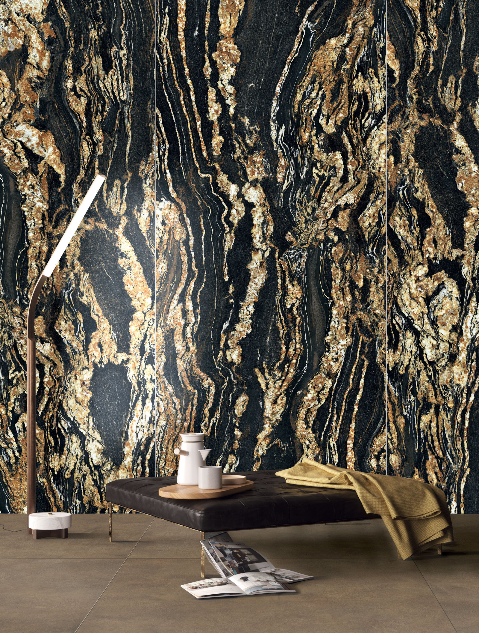 gresie portelanata Italia marmura neagra BLACK TAURUS LUX 120X270 + WORN COPPER 120X120.jpg
