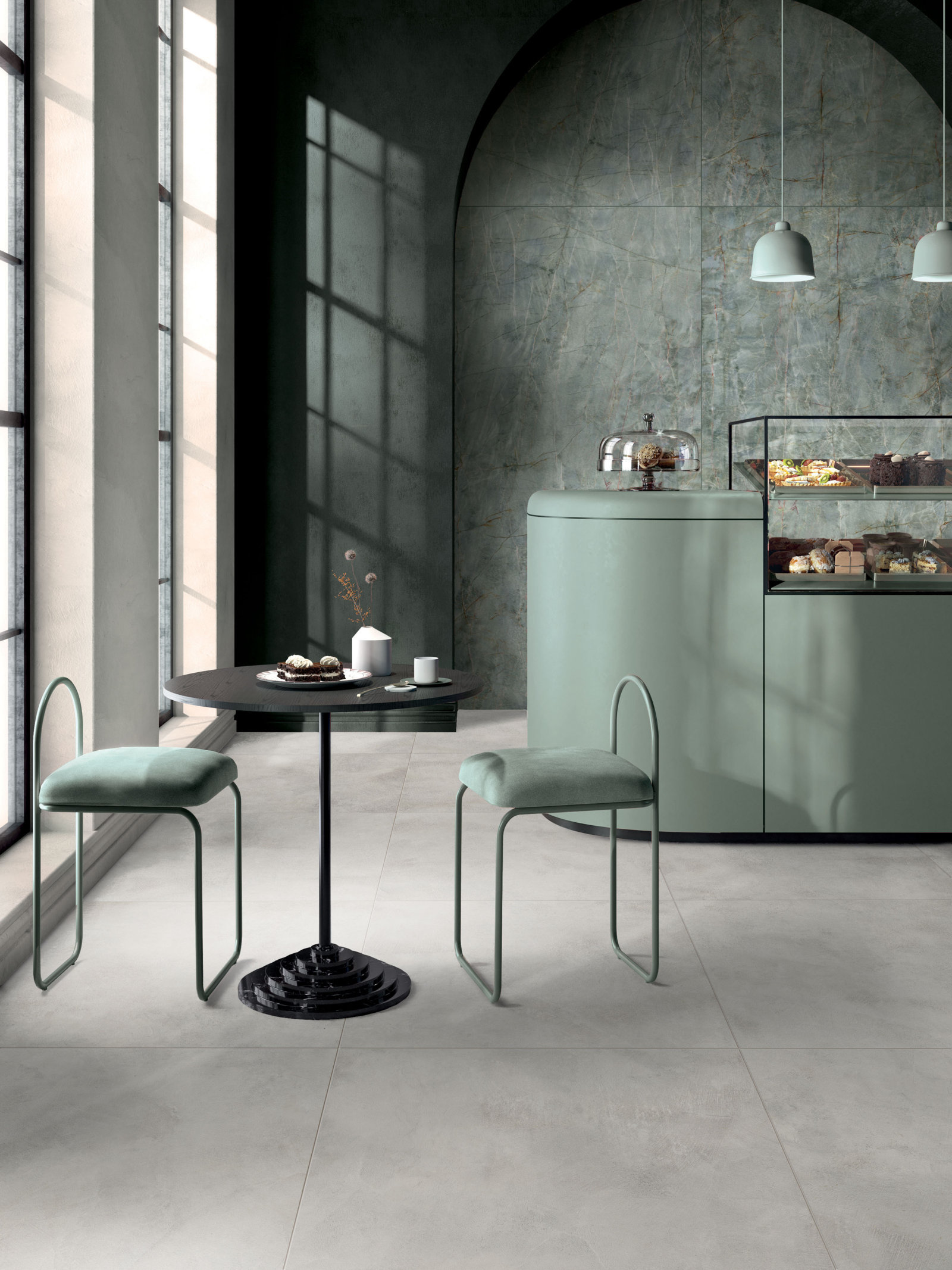 gresie portelanata Italia marmura verde beton EMERALD GREEN LUX 120X270 + LUCE PERLA GRIP 80X80.jpg